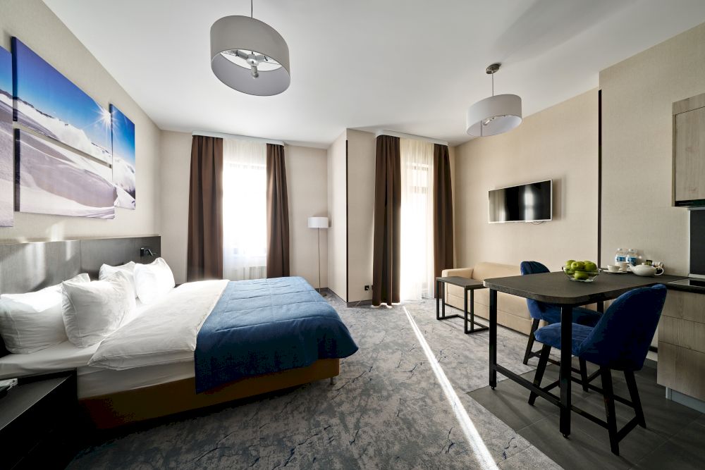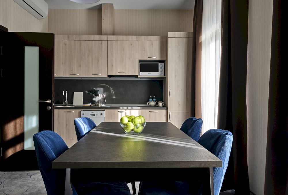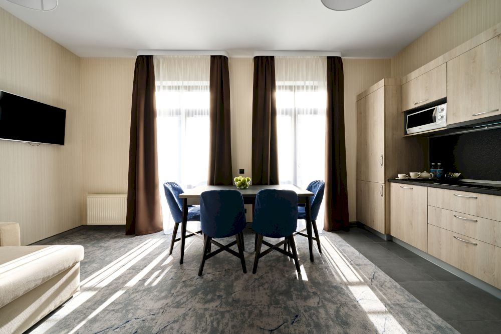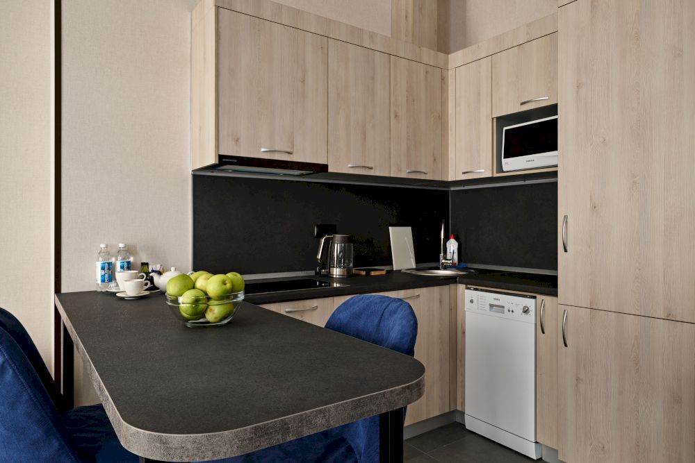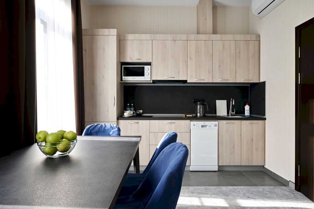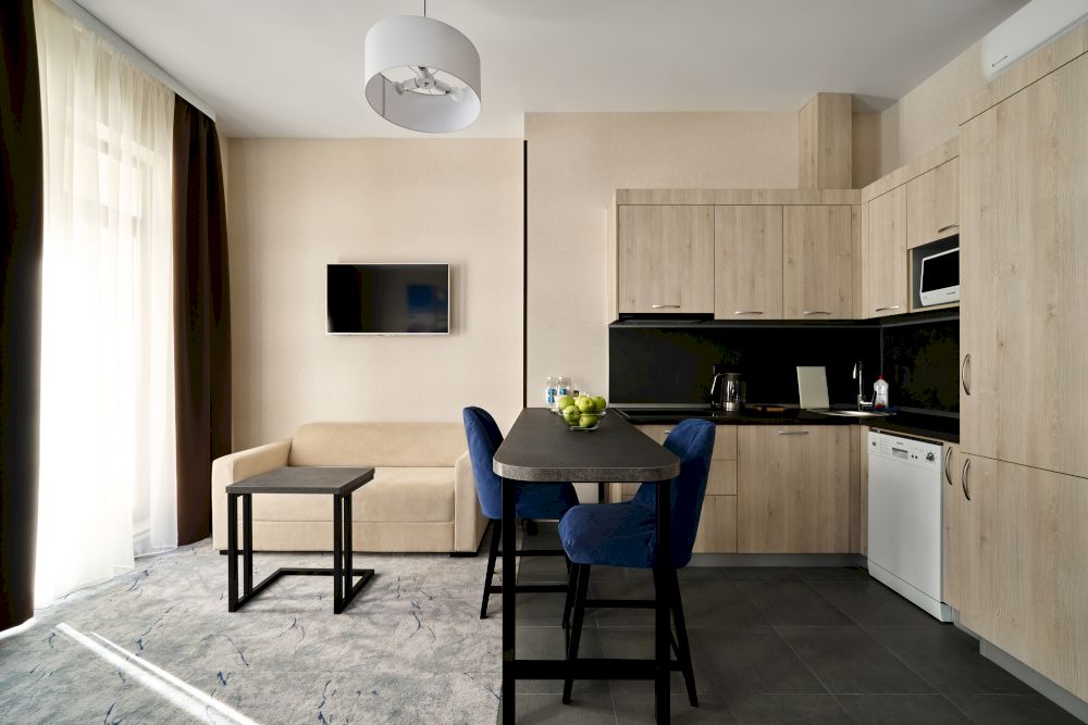 современной бытовой техникой и мебелью. Проживающие в апартаментах могут