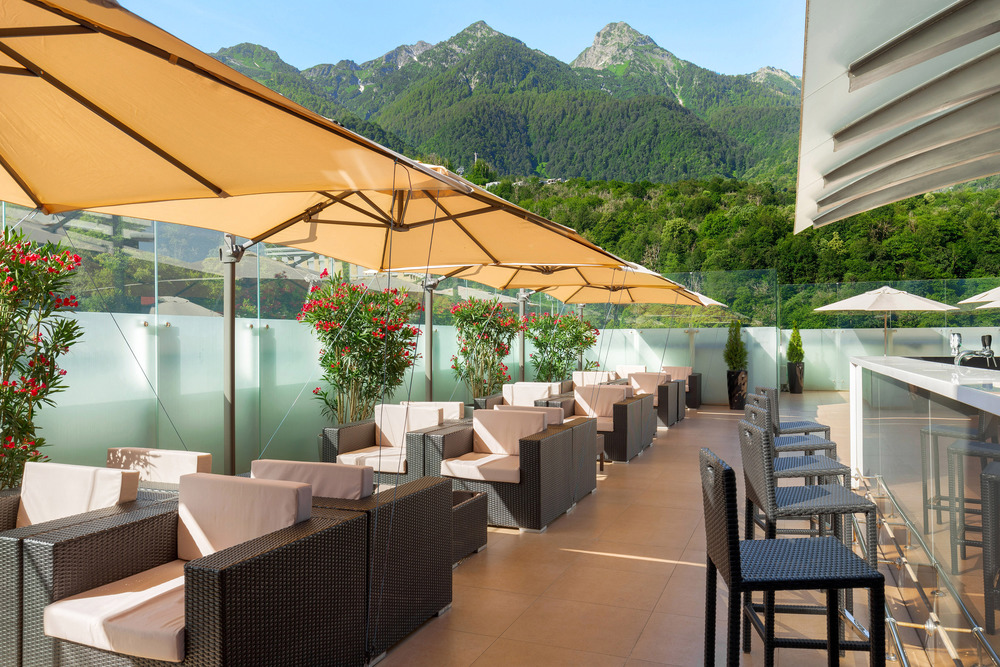 Отель Radisson Rosa Khutor находится в самом центре круглогодичного горнолыжного курорта, а также в пешей доступности от подъемников Олимпия и Стрела. Любителям горнолыжного спорта доступны услуги проката лыж и хранения снаряжения. В ресторане Black Bar and Grill готовят изысканные блюда из местных продуктов. В ресторане Seasons ежедневно подается вкусный завтрак ("шведский стол"). Гости могут отдохнуть в оздоровительном клубе и спа-салоне Pyramid Health Club & Spa или насладится видом на горы из гидромассажной ванны на свежем воздухе, которая подогревается круглый год. Отель предлагает видоизменяемые пространства для проведения разнообразных деловых и праздничных мероприятий