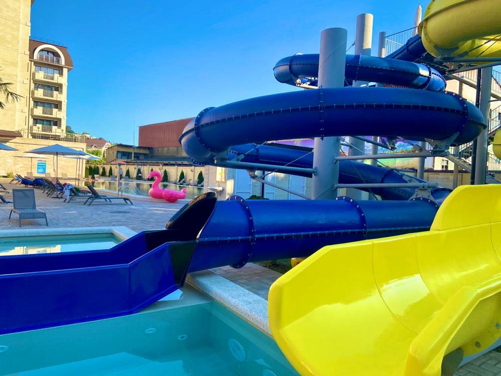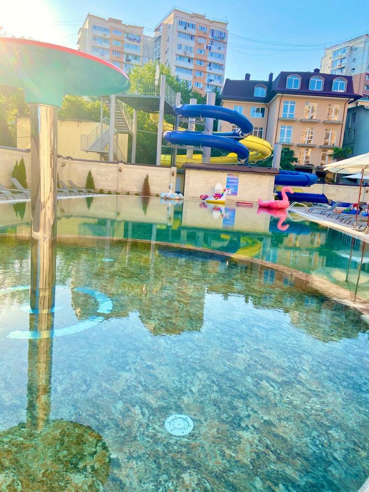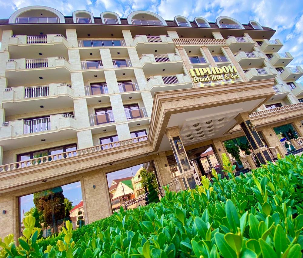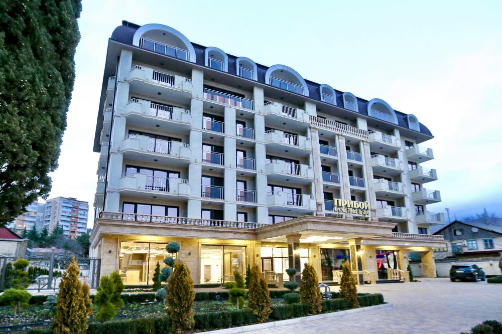 "ГРАНД ОТЕЛЬ ПРИБОЙ" - первый СПА отель в Лазаревском районе. В гостинице просторные номера класса люкс, подземная парковка на 50 машин, 3 бассейна на закрытой территории, ресторан европейской кухни, детская анимация в летний период 2 раза в неделю, водные горки и трансфер до пляжа