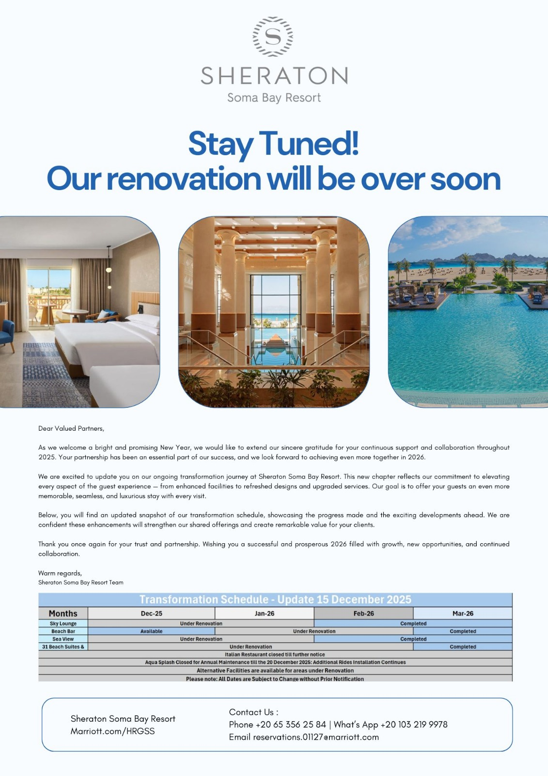 Внимание! Аквапарк Sheraton Soma Bay будет закрыт на ежегодное техническое обслуживание с 1 декабря 2025 года на 3 недели.