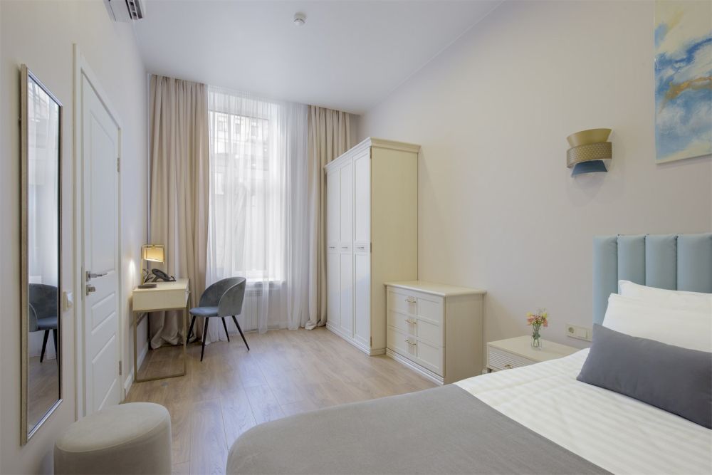 Современный апарт-отель ACADEMIA ВАСИЛЬЕВСКИЙ расположен в уникальном петербургском особняке. Благодаря элегантным интерьерам в светлой цветовой гамме, продуманному зонированию пространства и функциональному расположению мебели, отель прекрасно подходит для любой категории гостей: семей с детьми, бизнес-туристам, молодоженам, компаниям друзей и тем, кто предпочитает длительное проживание. В отеле представлены номера и сьюты с различными планировками, включающими в себя изолированные спальни, оборудованные кухни и кухни-гостиные, просторные ванные комнаты с ванной и/ или душем