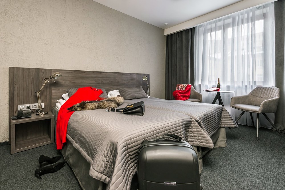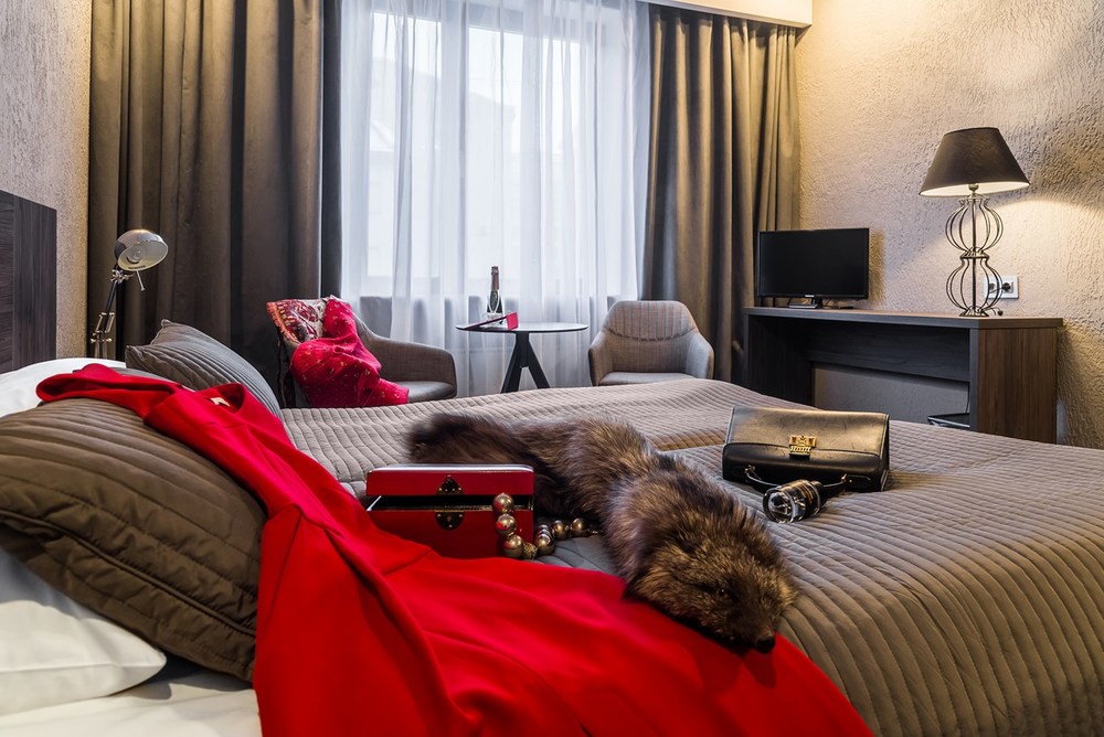 Отель находится в историческом здании складских помещений типографии знаменитой "Правды". Недалеко от отеля находится музей-квартира Достоевского, где Федор Михайлович прожил последние годы жизни и написал один из своих лучших романов – "Братья Карамазовы". Украшенный антикварной мебелью и предметами роскоши, отель находится в двух временнЫх пространствах: с одной стороны он предлагает своим гостям комфорт современной жизни, с другой – переносит вошедшего сюда в Петербург Достоевского. Отсюда изысканный дизайн интерьерных номеров, которые напоминают салоны петербургской аристократии. Их изюминка состоит еще и в том, что все номера класса люкс носят имена героинь романов Достоевского