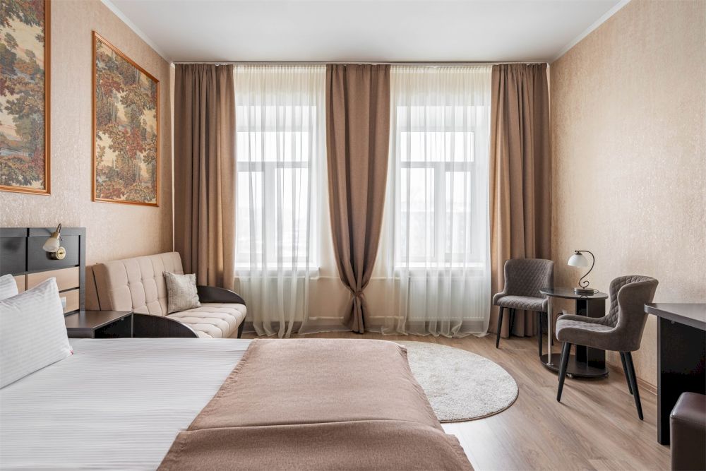 Гостей ждут со вкусом оформленные, просторные, видовые номера. Часть номеров отеля выходят во двор, на исторические крыши