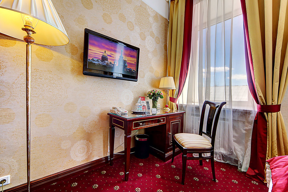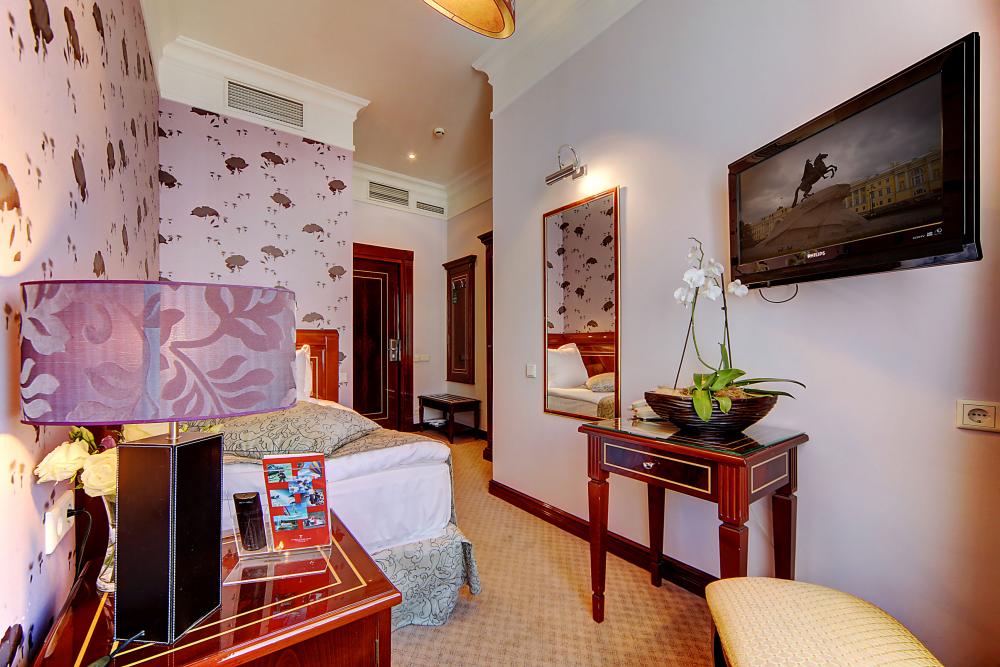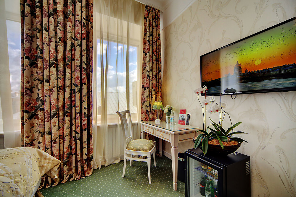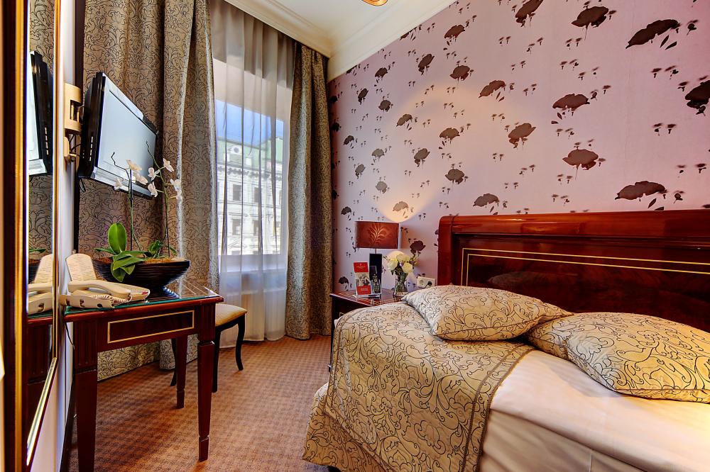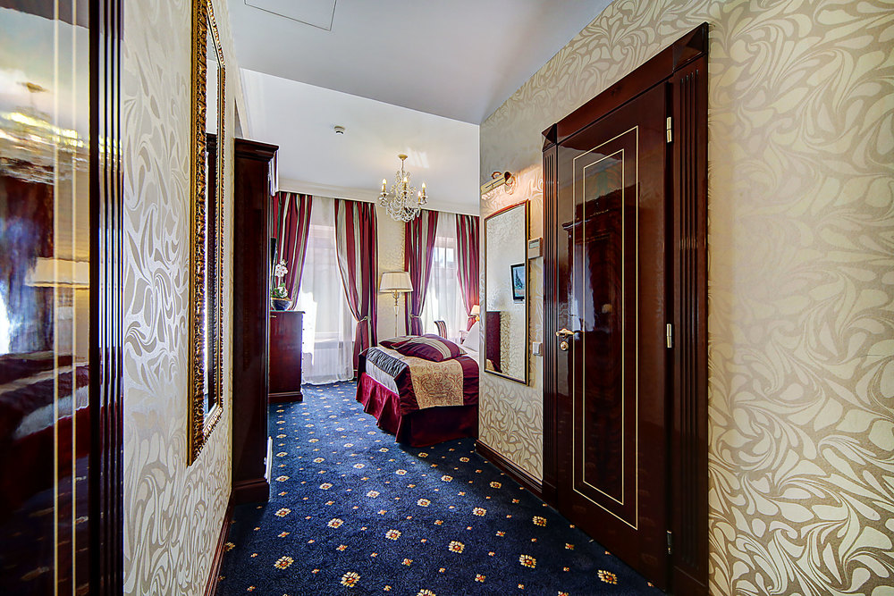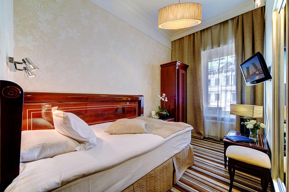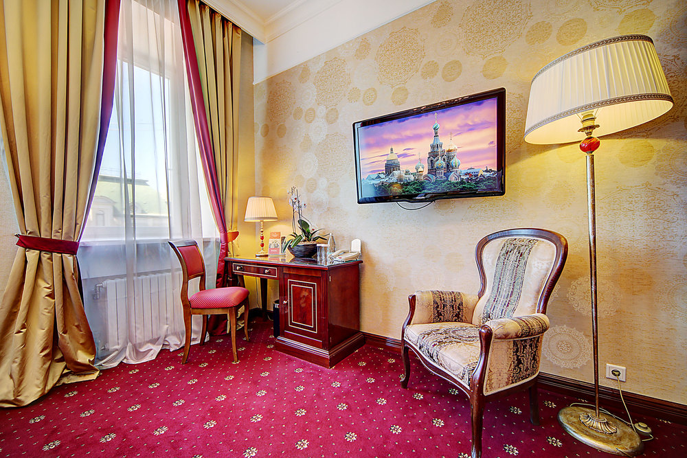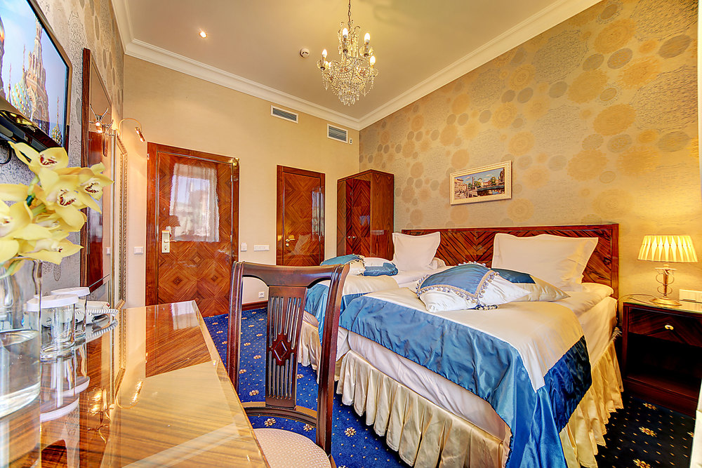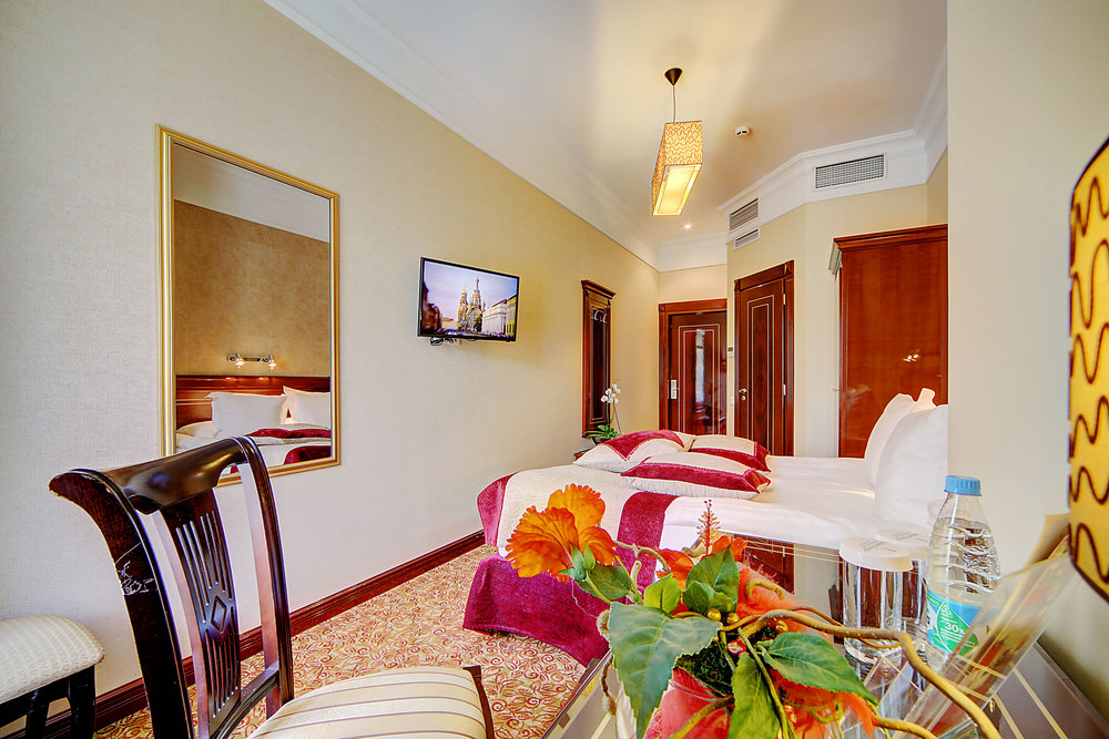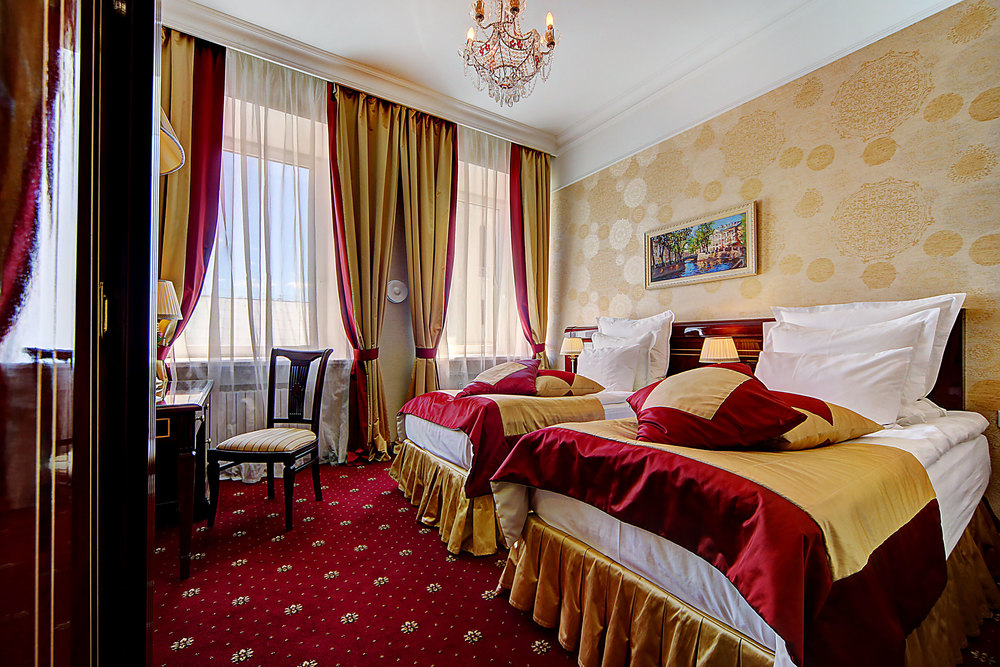 Бутик-отель "Золотой Треугольник" - это неповторимая концепция тематического дизайна, эксклюзивный шарм, удобное расположение на Невском проспекте всего в 5 минутах от Эрмитажа, Дворцовой площади, Казанского собора и Спаса на крови, высочайшее качество обслуживания и особенная атмосфера элегантной роскоши. В отеле комфортабельные номера с видом на Большую Конюшенную улицу и Лютеранскую церковь. Отделка номеров выполнена по проектам трех именитых дизайнеров, победителей европейских арт-фестивалей. Органично используются натуральные материалы - красное дерево, мрамор, тканевые обои с различными фактурами. Дизайн интерьеров отражает основную концепцию гостиницы - элегантная роскошь в историческом окружении, эффектно подчеркнутая яркими деталями в виде хрустальных люстр и бра, живописных полотен с видами города и старинных каминов 19 века. К услугам гостей: великолепный завтрак "шведский стол"