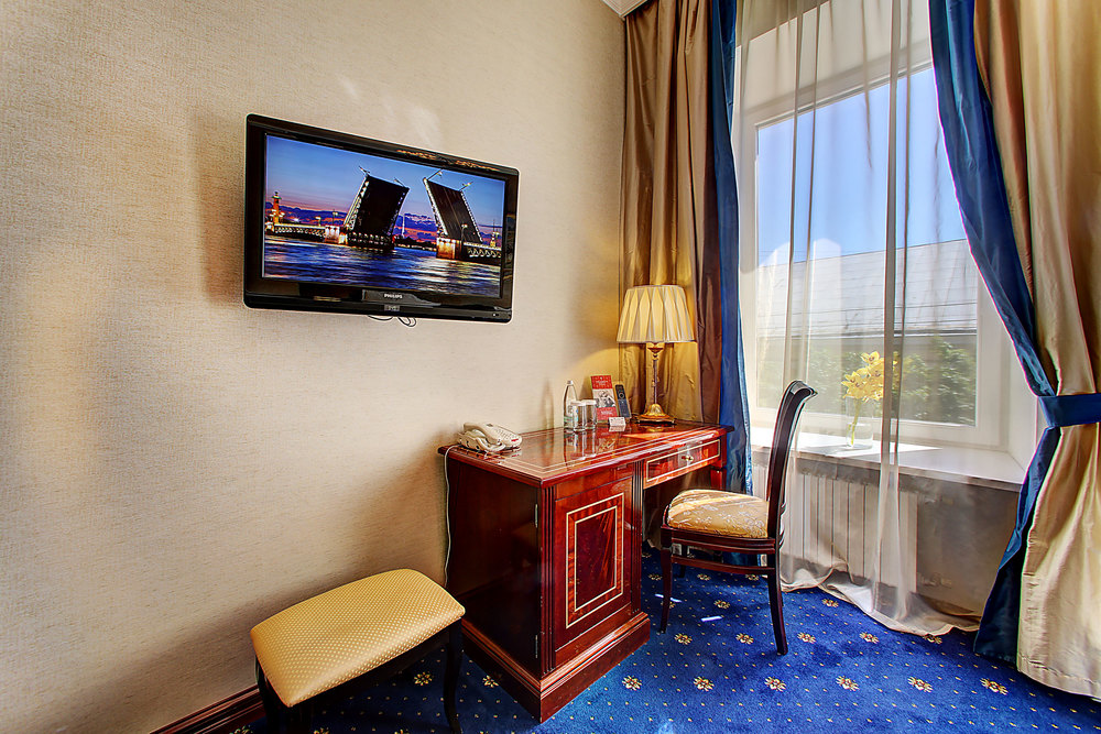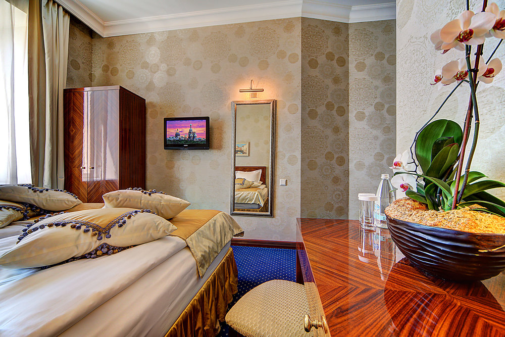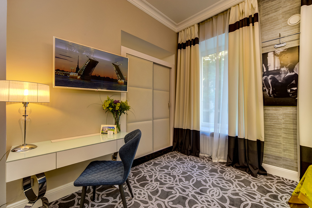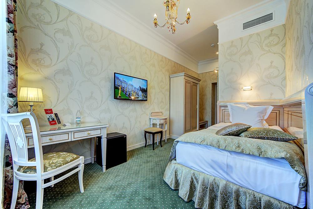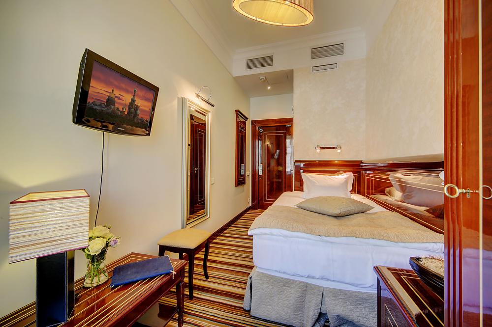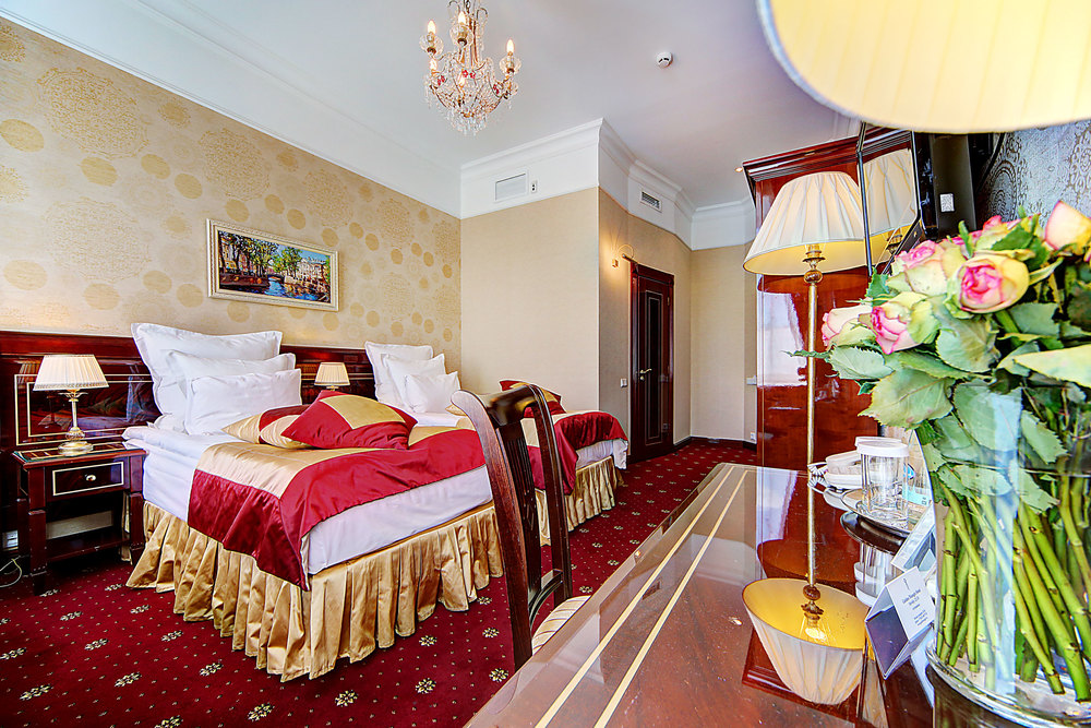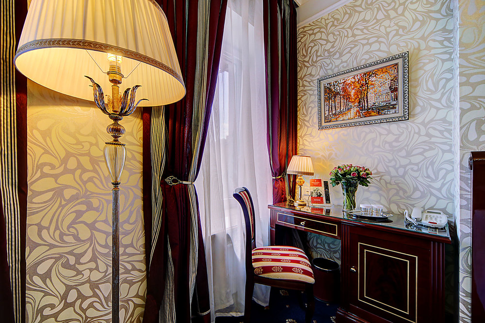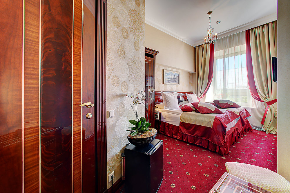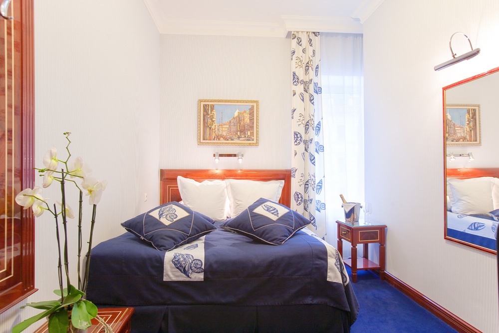 Бутик-отель "Золотой Треугольник" - это неповторимая концепция тематического дизайна, эксклюзивный шарм, удобное расположение на Невском проспекте всего в 5 минутах от Эрмитажа, Дворцовой площади, Казанского собора и Спаса на крови, высочайшее качество обслуживания и особенная атмосфера элегантной роскоши. В отеле комфортабельные номера с видом на Большую Конюшенную улицу и Лютеранскую церковь. Отделка номеров выполнена по проектам трех именитых дизайнеров, победителей европейских арт-фестивалей. Органично используются натуральные материалы - красное дерево, мрамор, тканевые обои с различными фактурами. Дизайн интерьеров отражает основную концепцию гостиницы - элегантная роскошь в историческом окружении, эффектно подчеркнутая яркими деталями в виде хрустальных люстр и бра, живописных полотен с видами города и старинных каминов 19 века. К услугам гостей: великолепный завтрак "шведский стол"