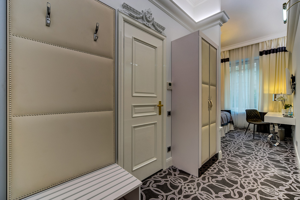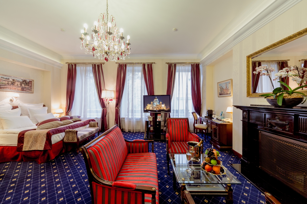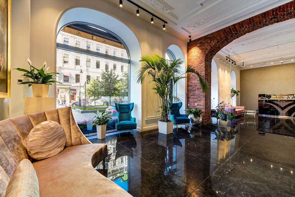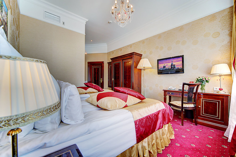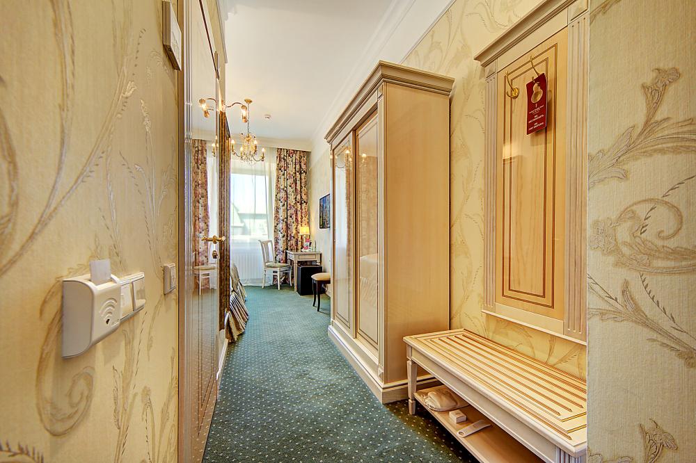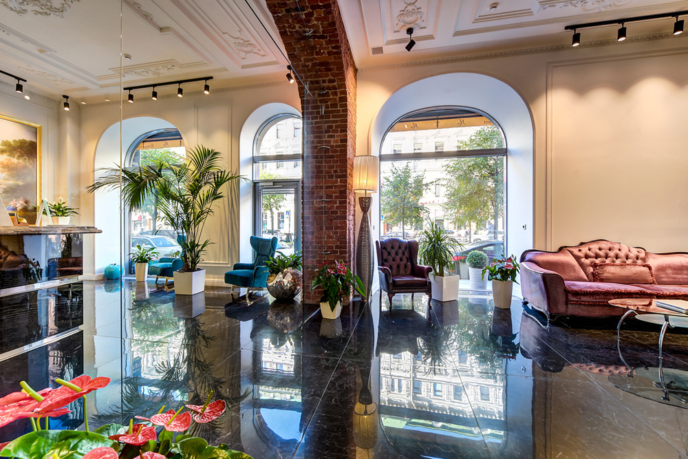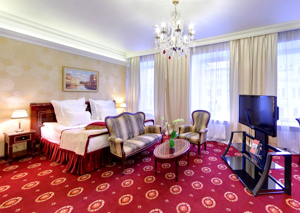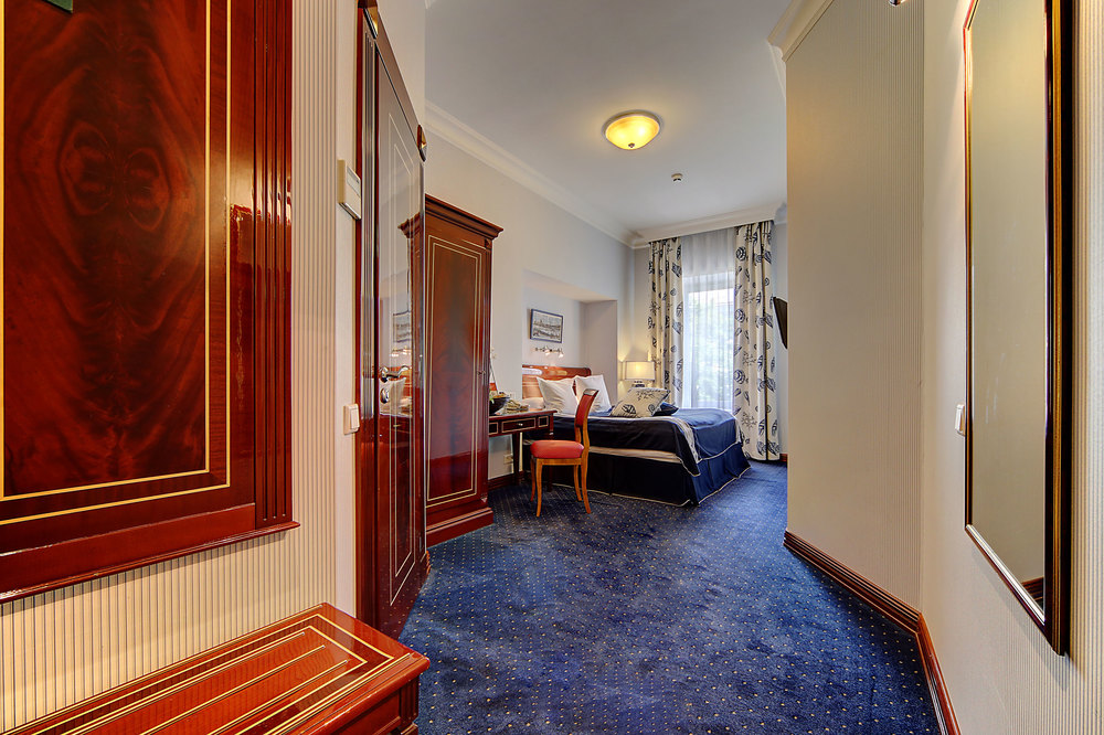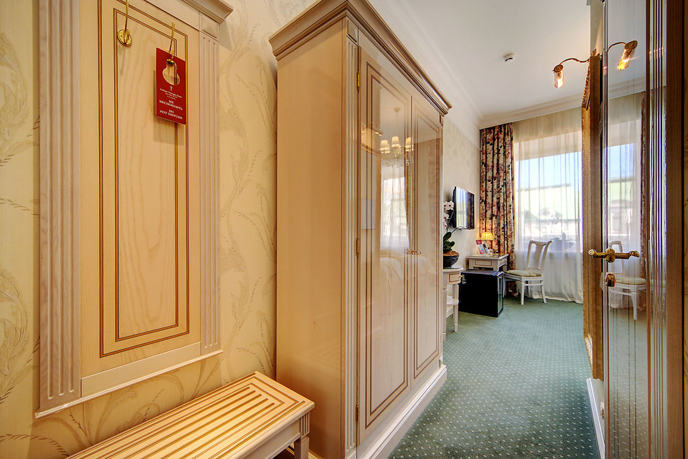 Бутик-отель "Золотой Треугольник" - это неповторимая концепция тематического дизайна, эксклюзивный шарм, удобное расположение на Невском проспекте всего в 5 минутах от Эрмитажа, Дворцовой площади, Казанского собора и Спаса на крови, высочайшее качество обслуживания и особенная атмосфера элегантной роскоши. В отеле комфортабельные номера с видом на Большую Конюшенную улицу и Лютеранскую церковь. Отделка номеров выполнена по проектам трех именитых дизайнеров, победителей европейских арт-фестивалей. Органично используются натуральные материалы - красное дерево, мрамор, тканевые обои с различными фактурами. Дизайн интерьеров отражает основную концепцию гостиницы - элегантная роскошь в историческом окружении, эффектно подчеркнутая яркими деталями в виде хрустальных люстр и бра, живописных полотен с видами города и старинных каминов 19 века. К услугам гостей: великолепный завтрак "шведский стол"