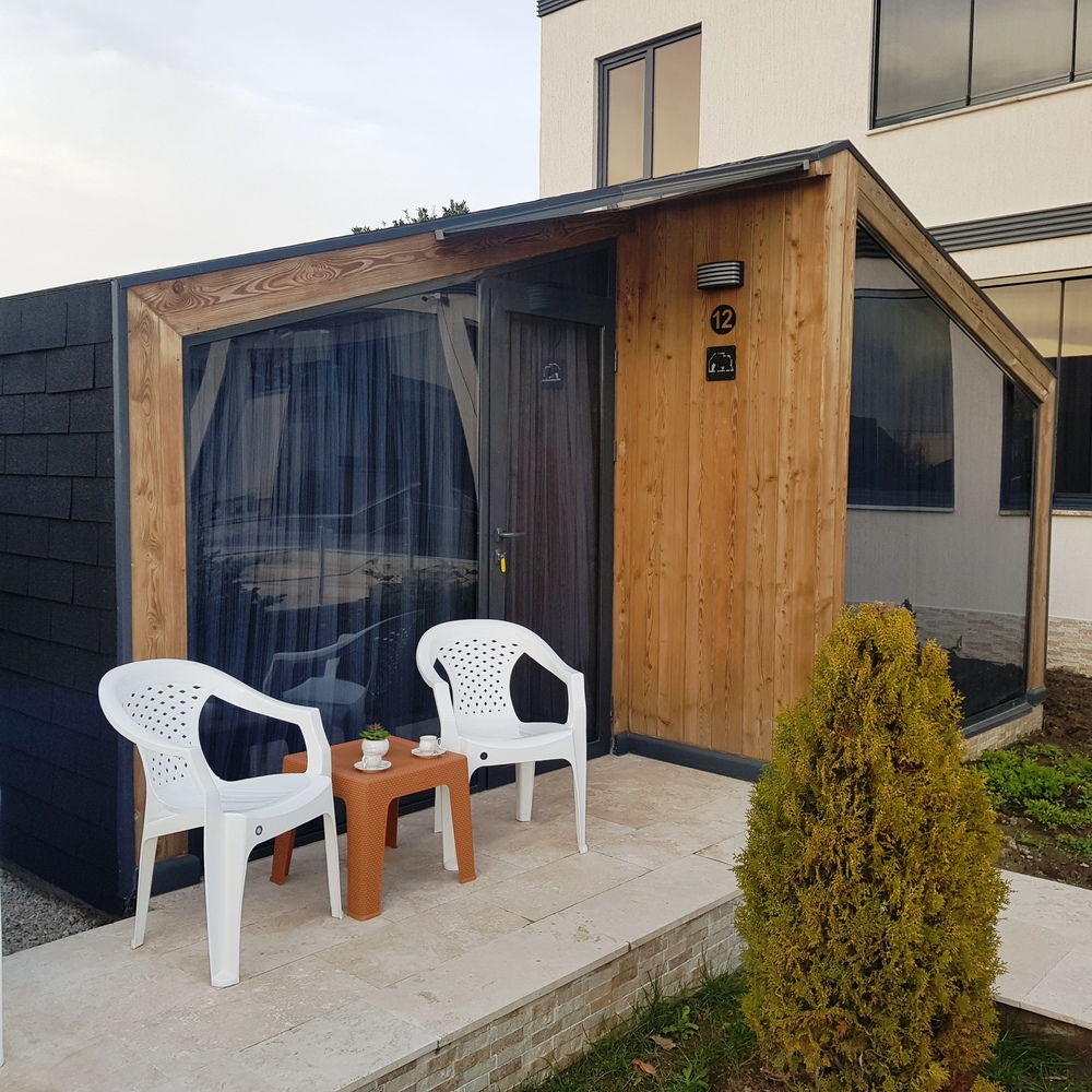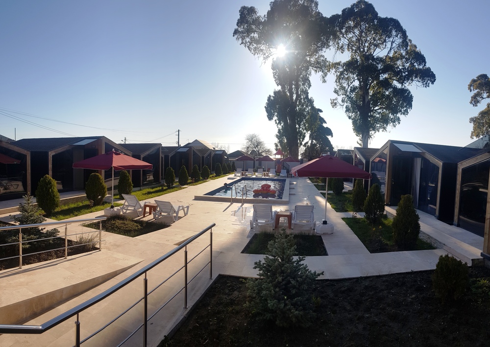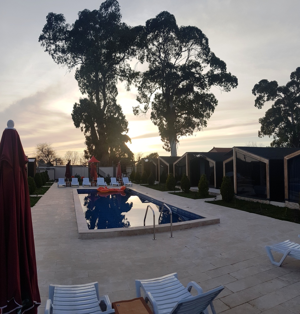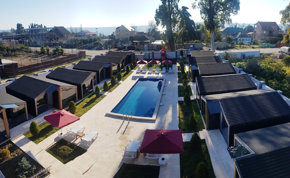"Черный слон" находится на расстоянии 100 м от моря на второй береговой линии. На закрытой территории: открытый бассейн, детская площадка, зона барбекю на открытым воздухе, 12 коттеджей максимальной вместимостью до 4 человек. В 3-этажном здании расположены: круглосуточная стойка регистрации, бар, финская сауна, стиральная машина, тренажерный зал, ресторан на 3 этаже с панорамным видом на море и горы