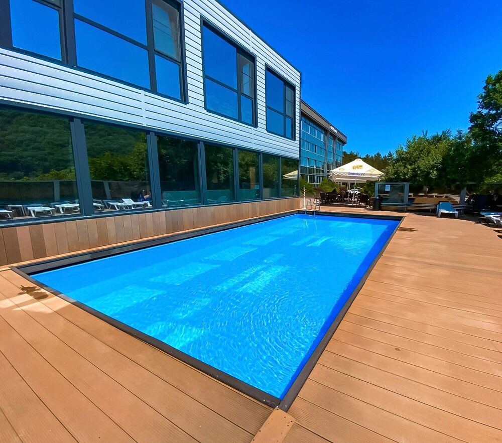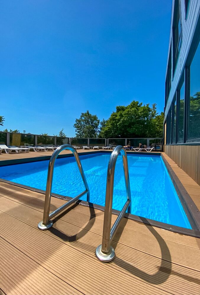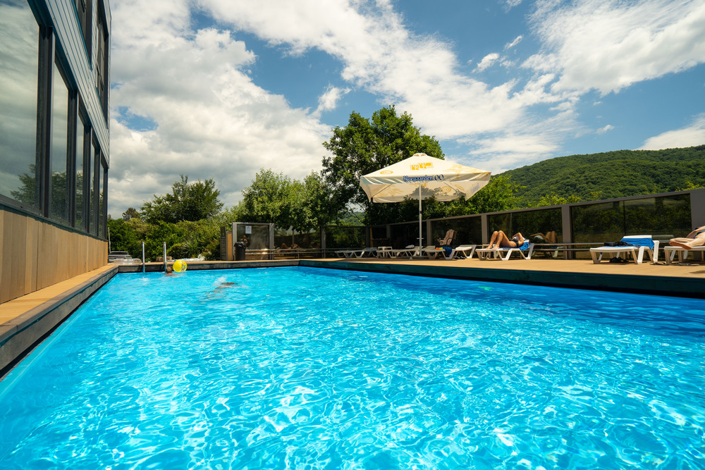 - бассейн 10х5 м (глубина 1.5 м), шезлонги и зонтики у бассейна