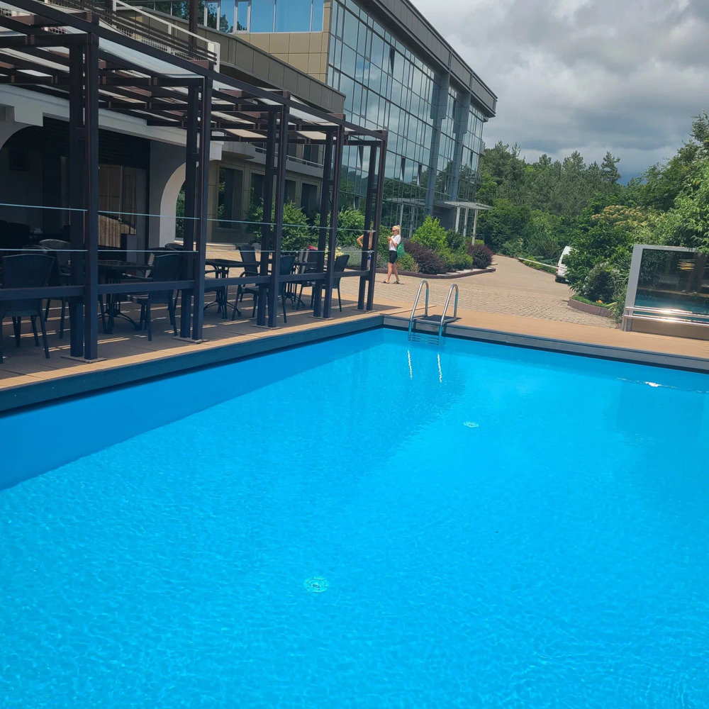 Отель "ГРЕЙС НЕБУГ КАЛИПСО" располагается в живописном месте черноморского побережья в селе Небуг в окружении великолепных лесных пейзажей и величественных гор. Фасад отеля имеет витражное остекление, что дает доступ естественному свету, особенно в солнечную погоду. К услугам гостей просторная зона отдыха, подогреваемый бассейн с удобными шезлонгами и зонтиками, обеденная зона, просторный зал с панорамным видом на местность, который подходит для занятий йогой или проведения конференций