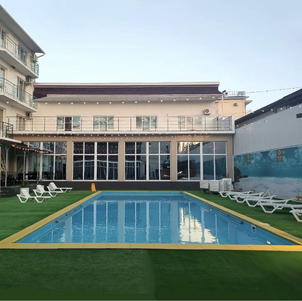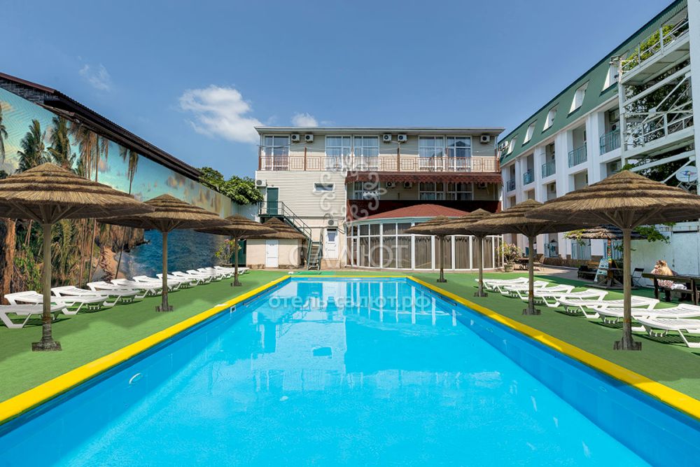 Отель "Салют" расположен в центре пгт. Новомихайловский на берегу реки Нечепсухо. Удобная транспортная развязка позволяет добраться в отель из любой точки Краснодарского края. Зона парка в отеле, вдали от суеты и шума, способствует полноценному отдыху гостей. На территории отеля высажены такие растения, как голубая ель, кипарисы, канны, туи, тропические юкки. К услугам гостей в отеле: открытый бассейн, бар-мангал, собственная аква-зона с 2 бассейнами, джакузи, финской сауной и хамамом, собственная отельная автостоянка
