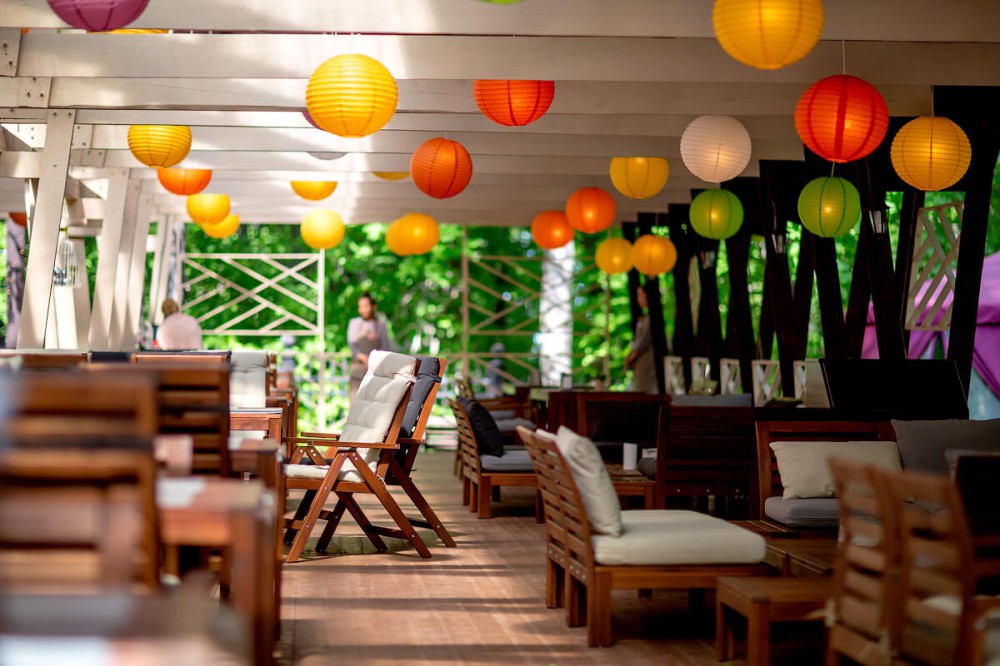массивами. Исключительной особенностью комплекса является наличие большого бассейна с саунами и тренажерным залом, которые абсолютно свободны для посещения гостей. Комплекс обладает колоссальными возможностями и опытом в организации мероприятий различного масштаба, уровня и статуса