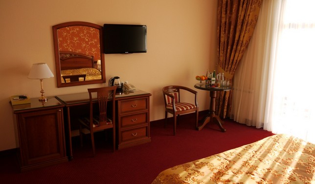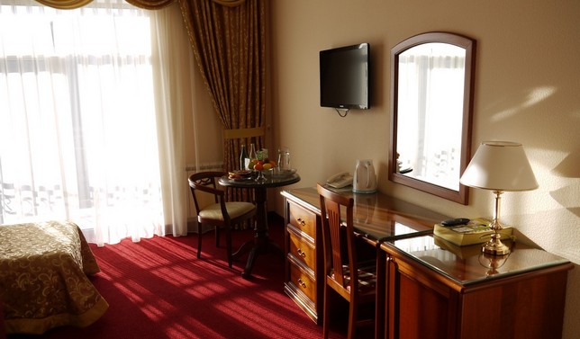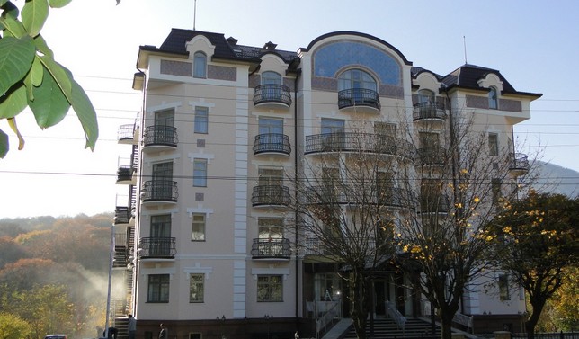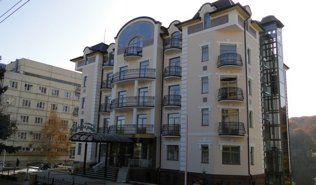 Санаторий представляет собой 7-ми этажное здание с панорамным лифтом, из которого открывается великолепный вид на горы. Благоустроенная территория санатория украшена клумбами и цветниками, что создает приятную обстановку для отдыха.